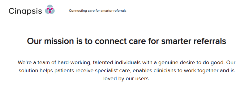 Cinapsis is an organisation using technology to improve specialist referrals across many sectors of UK health. Learn more about them here.